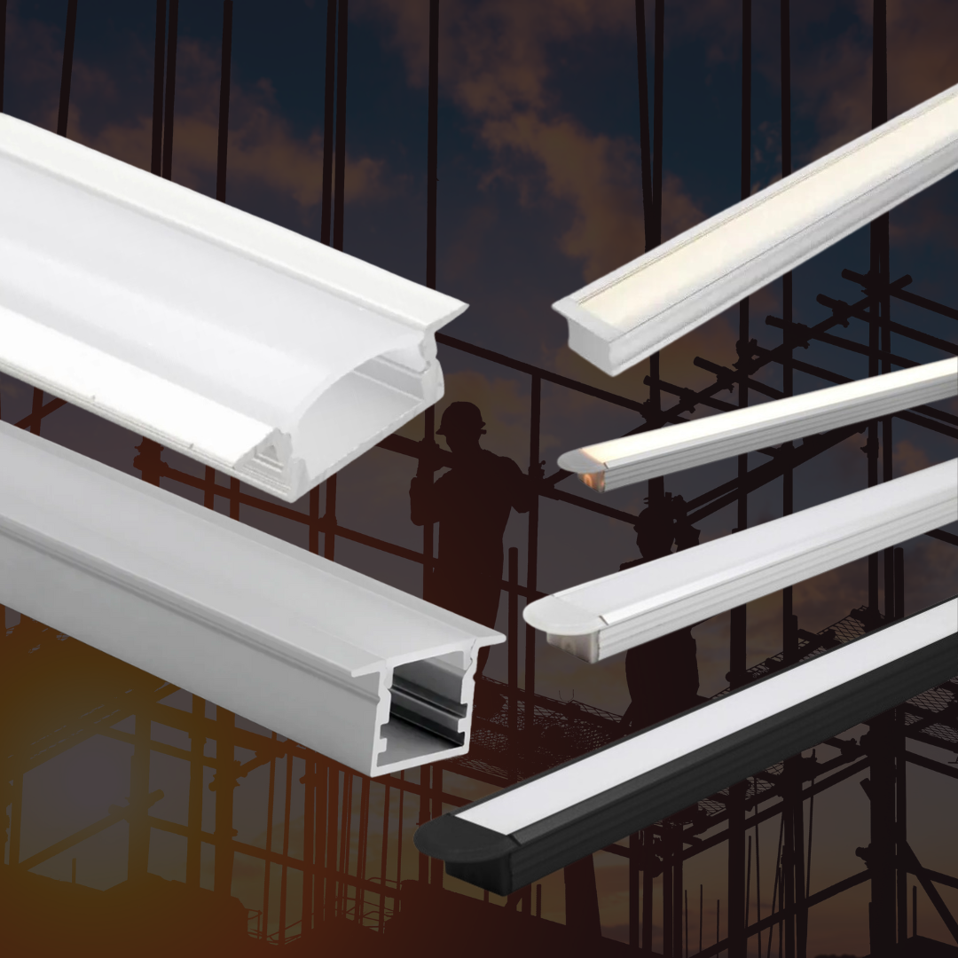 Perfis para LED, diversos tamanhos, no branco e no preto.